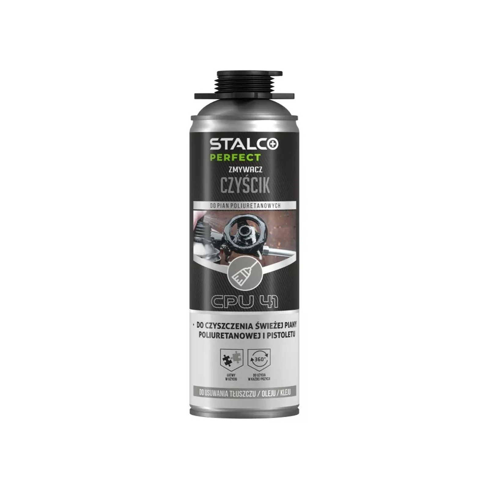 Czyścik do pian poliuretanowych CPU 41 Czyścik do pian poliuretanowych CPU 41 STALCO to niezastąpiony preparat w pracach montażowych i wykończeniowych. Umożliwia szybkie i skuteczne usuwanie świeżych pian poliuretanowych, silikonów oraz klejów, a także zabrudzeń powstałych podczas prac instalacyjnych i budowlanych. Świetnie sprawdza się do czyszczenia pistoletów do piany, zaworów w puszkach oraz odtłuszczania powierzchni stalowych przed zastosowaniem mas uszczelniających. Preparat oparty jest na acetonie, dzięki czemu gwarantuje wysoką skuteczność działania. Produkt został opracowany z myślą o wielokrotnym użyciu, co zwiększa jego wydajność i ogranicza koszty.