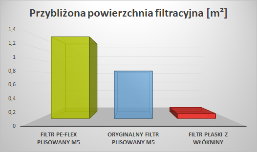 większa o 70% powierzchnia filtracji od oryginalnego filtra