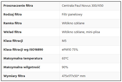 Filtry PEFLEX panelowe plisowane klasy M5 do rekuperatorów PAUL Novus 300 i 450 Filtry pasują do wszystkich wariantów central wentylacyjnych PAUL Novus 300 oraz Novus 450 - również z wymiennikiem entalpicznym (PAUL Novus F).