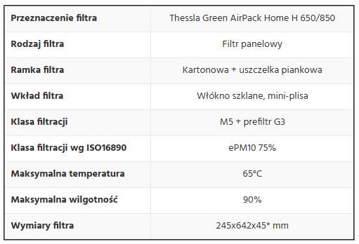 Filtry PEFLEX panelowe plisowane klasy M5 z wymienną włókniną prefiltracyjną G3 mocowaną na rzep do rekuperatorów Thessla Green AirPack Home H 650/850 Filtry pasują do wszystkich wariantów central Thessla Green AirPack Home H w wersji 650/850.