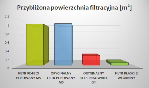czterokrotnie większa powierzchnia filtracyjna niż w oryginalnym filtrze G4