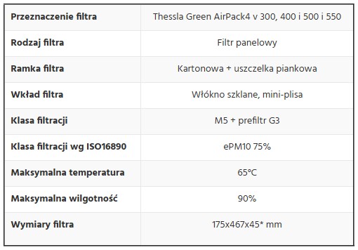Filtry PEFLEX panelowe plisowane klasy M5 z wymienną włókniną prefiltracyjną G3 mocowaną na rzep do rekuperatorów Thessla Green AirPack4 V 300/400/500/550 Filtry pasują do wszystkich wariantów central Thessla Green AirPack4 V w wersji 300, 400 i 500, 550. Nie pasują natomiast do starszych modeli AirPack Home ( dostępne tutaj ), oraz AirPack ( dostępne tutaj ) .