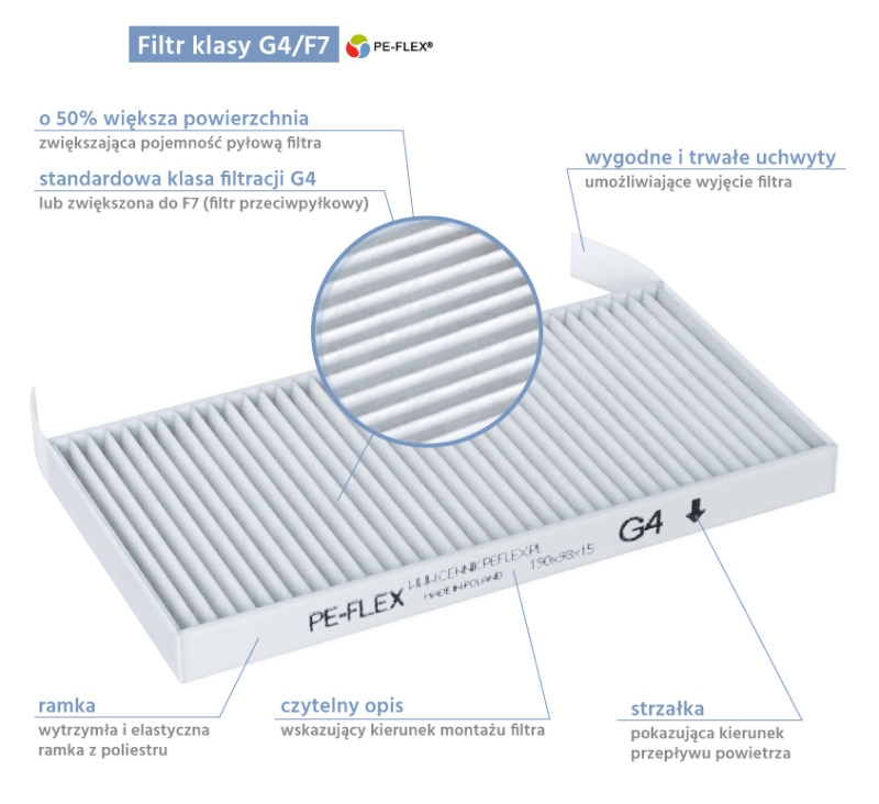 - zwiększona klasa filtracji zatrzymująca większość pyłków kwiatowych (dla alergików)