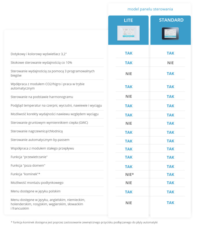 Rekuperatory IZZI sprzedawane są zawsze w komplecie z panelem sterowania.