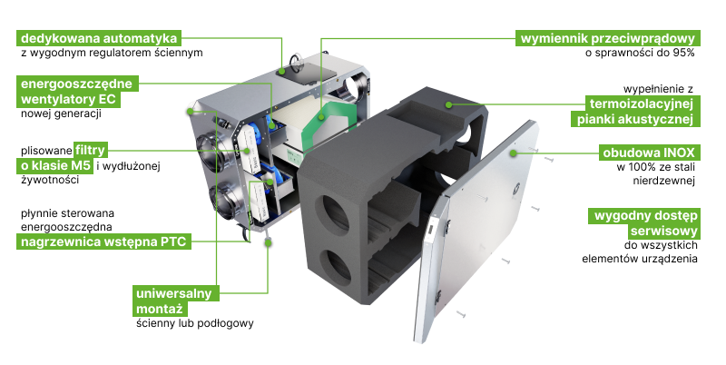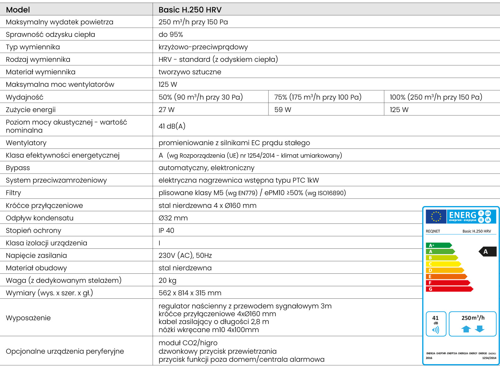 Główne cechy rekuperatora BASIC H.250 HRV: