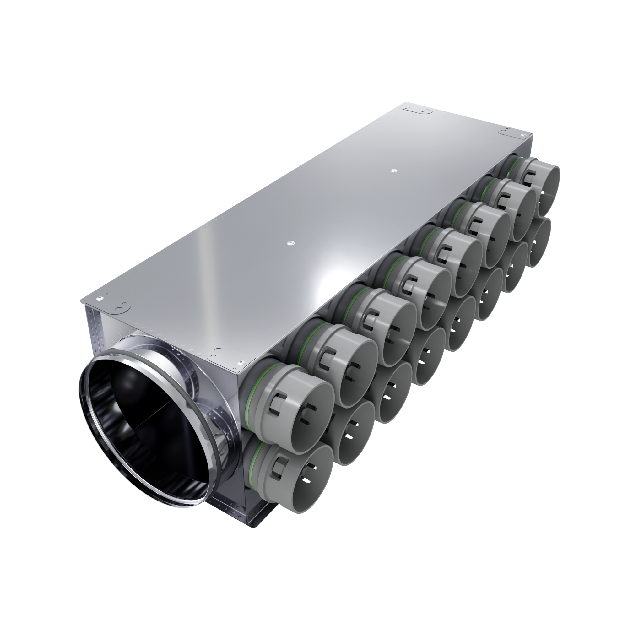 Skrzynki rozdzielcze są centralnym elementem układu wentylacji rozdzielaczowej. Służą do rozgałęzienia instalacji nawiewnej i wyciągowej biegnącej od rekuperatora do poszczególnych pomieszczeń.