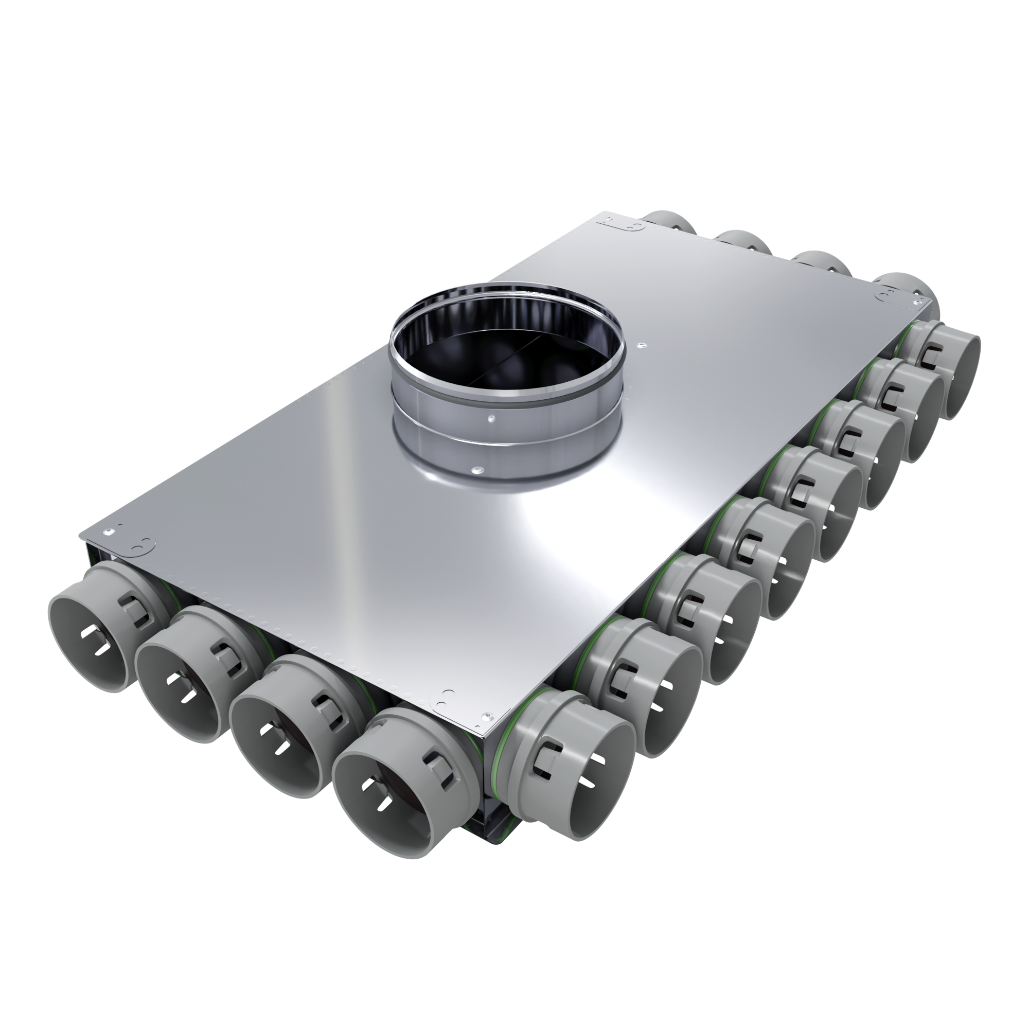 Skrzynki rozdzielcze są centralnym elementem układu wentylacji rozdzielaczowej. Służą do rozgałęzienia instalacji nawiewnej i wyciągowej biegnącej od rekuperatora do poszczególnych pomieszczeń.