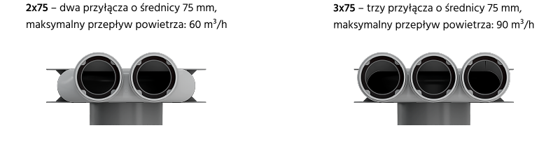 - nyplowy: 123 mm (zewn.) - kompatybilijny z przedłużkami i przewodami wentylacyjnymi o średnicy 125 mm