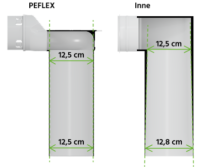 Wykonana w innowacyjnej technologii, jako jedyna na rynku zapewnia stałą i niezmienną średnicę wewnętrzną (125 mm) i zewnętrzną (129 mm) na całej długości króćca.