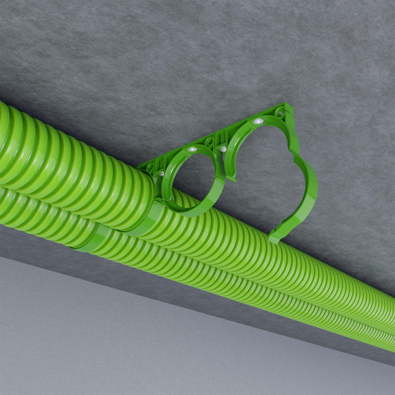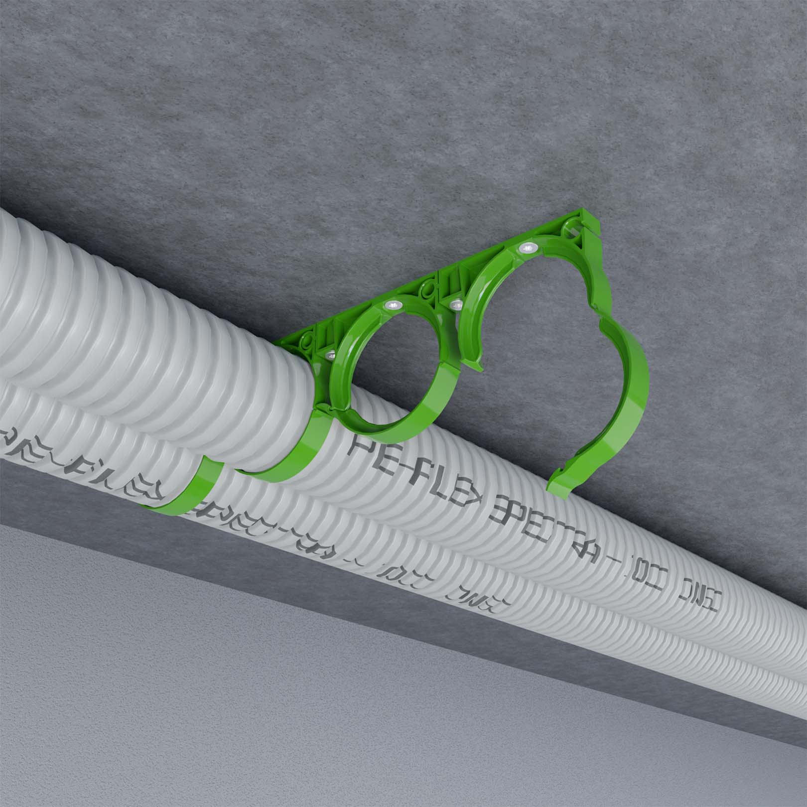 Zamykane uchwyty do rur PEFLEX Ø 75mm to idealne rozwiązanie do szybkiego i łatwego montażu przewodów wentylacyjnych na ścianach i sufitach. Dzięki systemowi pióro-wpust, uchwyty można łączyć ze sobą. Zestaw zawiera 10 sztuk uchwytów.