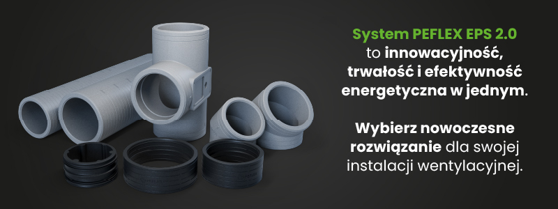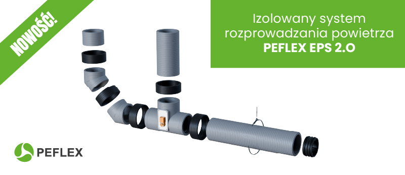 Poznaj nowy system rozprowadzania powietrza PEFLEX EPS 2.0 PEFLEX EPS 2.0 to najnowsza generacja izolowanego systemu rozprowadzania powietrza, zaprojektowana z myślą o szybkim, szczelnym i energooszczędnym montażu instalacji wentylacyjnych. To nowoczesne rozwiązanie łączy wysoką estetykę wykonania z doskonałymi właściwościami izolacyjnymi, umożliwiając bezproblemowe połączenie rekuperatora z rozdzielaczami, czerpnią i wyrzutnią powietrza .
